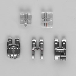 Inclusief exclusieve naaivoetenset met 5 BONUS naaivoeten: Smalle kantstikvoet voor IDT™-systeem; Blinde ritsvoet; Paspelvoet; Soutachevoet voor IDT™-systeem en Open applicatievoet voor IDT™-systeem.